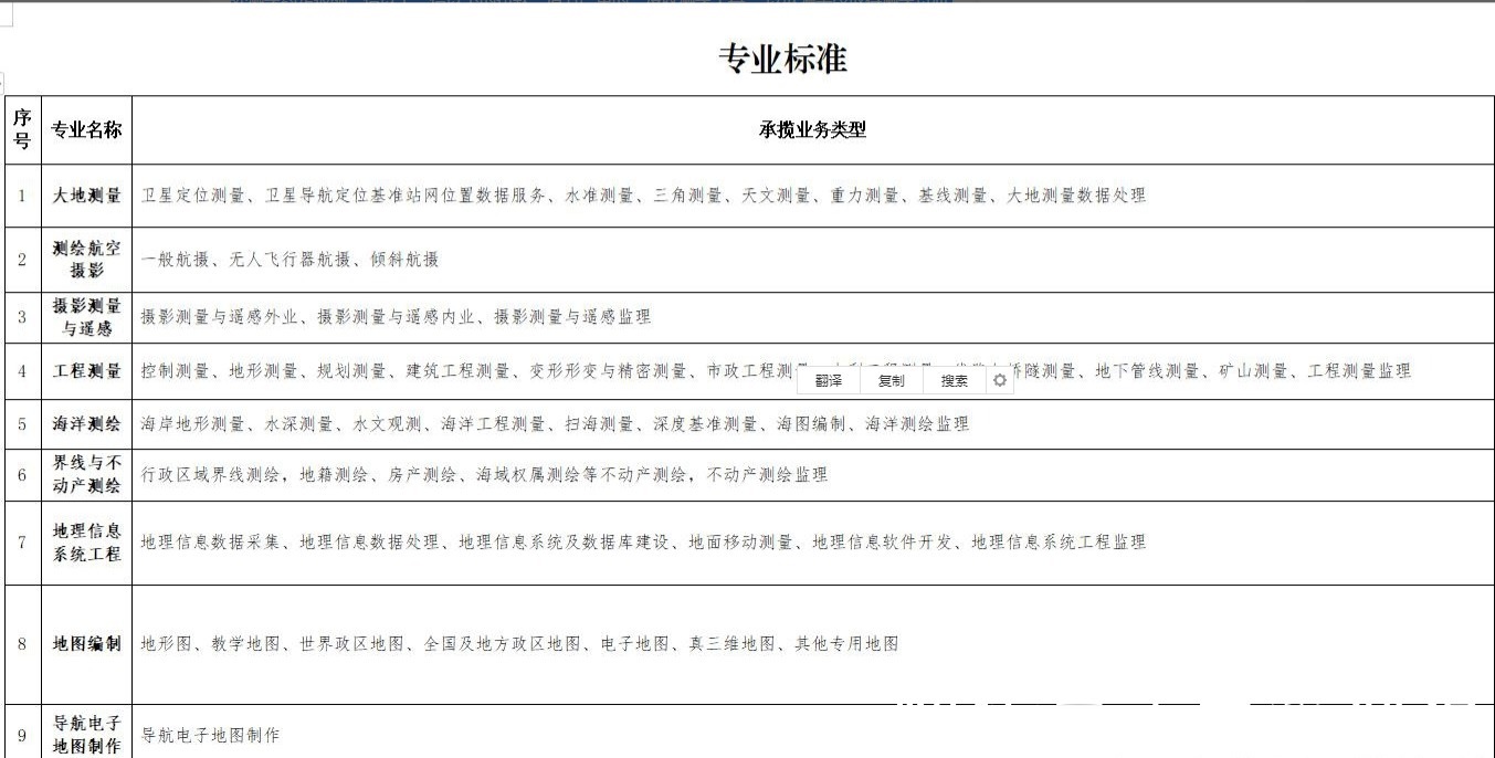 那么申请测绘测绘资前,我们就得明白,我需要办理哪些专业。我把各专业的承接范围归纳为一个表供大家参考。